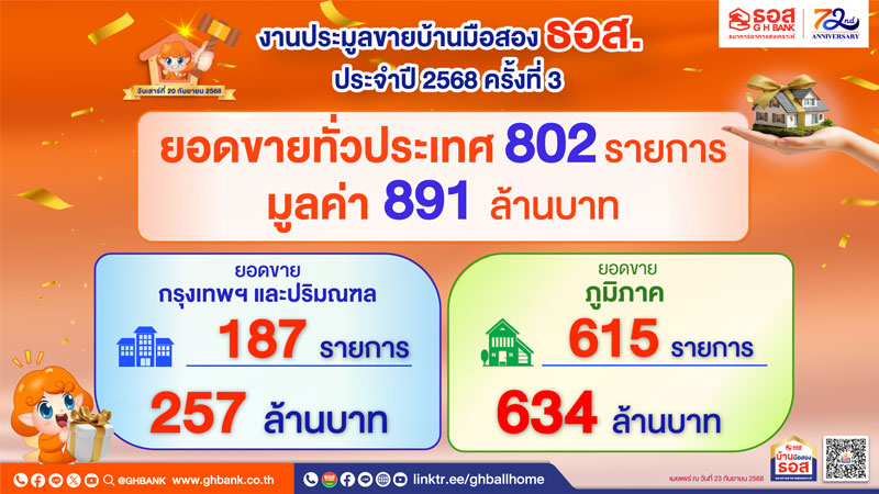 บ้านมือสองโดนใจ !! ธอส. ช่วยคนไทยมีบ้าน ลูกค้าประมูลทรัพย์มือสองทั่วประเทศได้กว่า 800 รายการ มูลค่ารวม 891 ล้านบาท