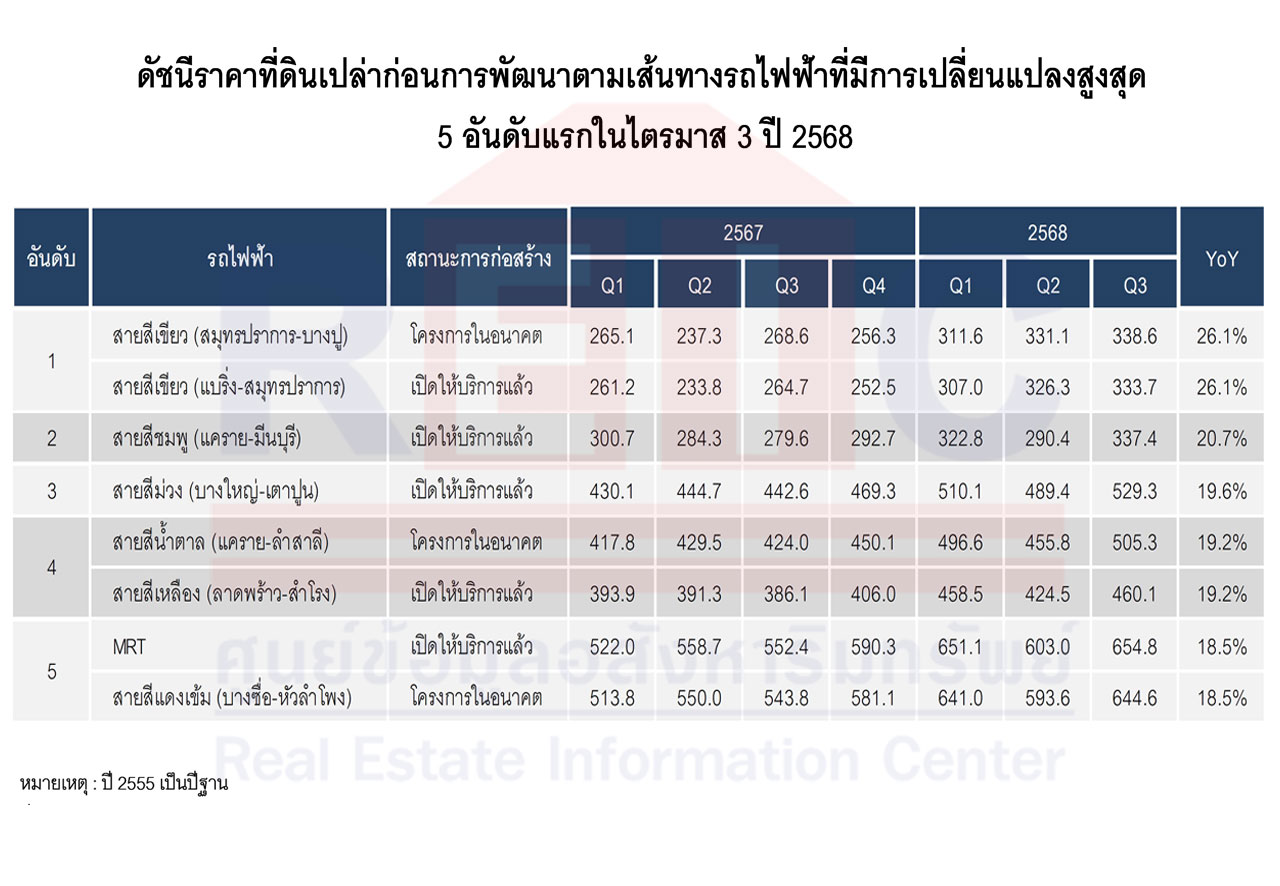 ทั้งนี้ ในจำนวนหน่วยเสนอขายจำนวน 199,949 หน่วย มูลค่า 976,823 ล้านบาท ประกอบด้วยโครงการบ้านจัดสรร 119,483 หน่วย มูลค่ารวม 624,876 ล้านบาท และโครงการอาคารชุด จำนวน 80,466 หน่วย มูลค่าโครงการรวม 351,947 ล้านบาท โดยทำเลที่มีโครงการบ้านจัดสรรเสนอขายสูงสุด อันดับ 1 โซนลำลูกกา-คลองหลวง-ธัญบุรี-หนองเสือ โดยมีหน่วยเสนอขาย 21,722 หน่วย มูลค่ารวม 77,011 ล้านบาท อันดับ 2 โซนบางพลี-บางบ่อ-บางเสาธง จำนวน 17,441 หน่วย มูลค่า 104,033 ล้านบาท อันดับ 3 บางใหญ่-บางบัวทอง-บางกรวย-ไทรน้อย จำนวน 16,771 หน่วย มูลค่า 75,685 ล้านบาท อันดับ 4 เมืองสมุทรปราการ-พระประแดง-พระสมุทรเจดีย์ จำนวน 10,276 หน่วย มูลค่า 38,925 ล้านบาท อันดับ 5 เมืองปทุม-ลาดหลุมแก้ว-สามโคก จำนวน 9,747 หน่วย มูลค่า 37,214 ล้านบาท