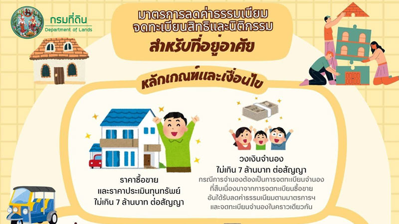 คณะรัฐมนตรีมีมติเห็นชอบและอนุมัติ “มาตรการลดภาระค่าธรรมเนียมสำหรับการจดทะเบียนสิทธิและนิติกรรม กรณีอสังหาริมทรัพย์ซึ่งเป็นที่อยู่อาศัยสำหรับผู้มีรายได้น้อยถึงปานกลาง”
